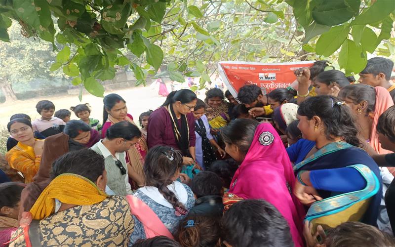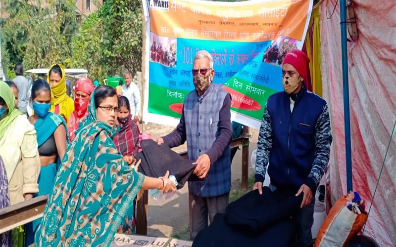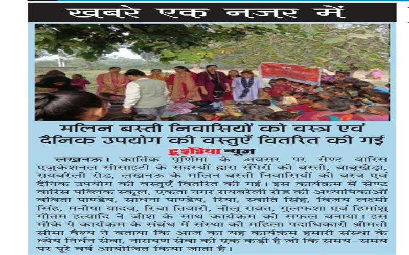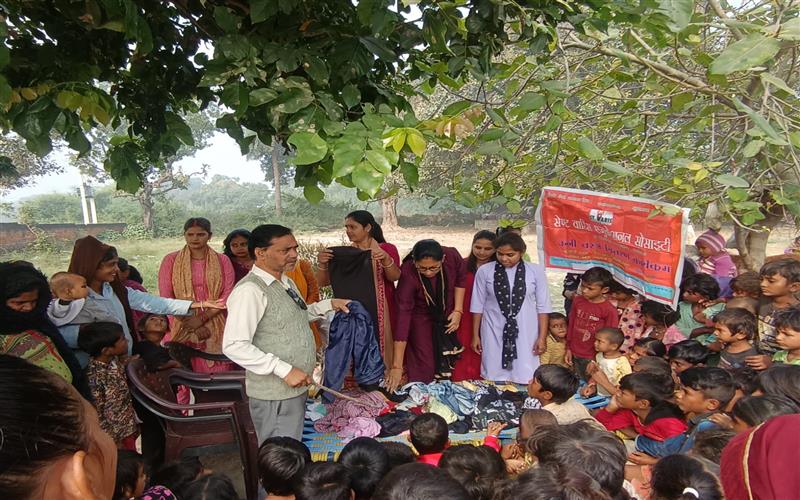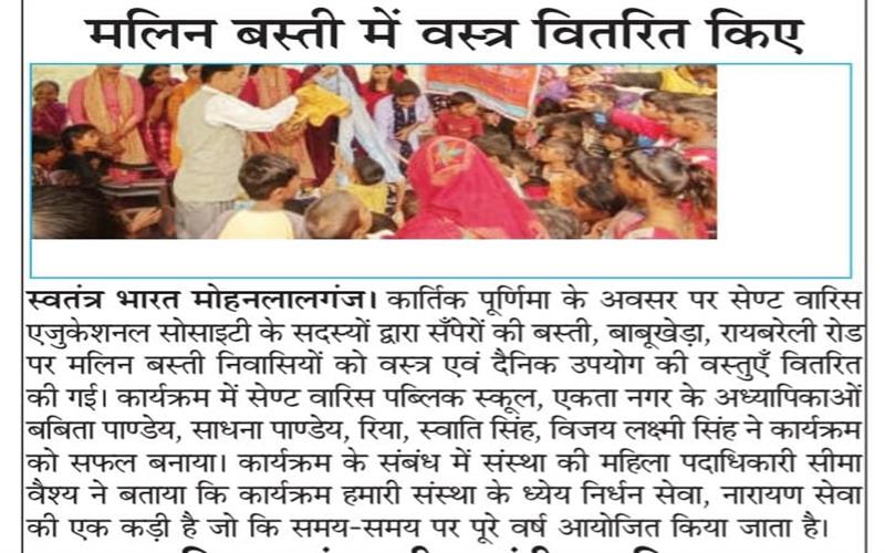 clothes distribution to children in Mawaiya, Raibareli Road